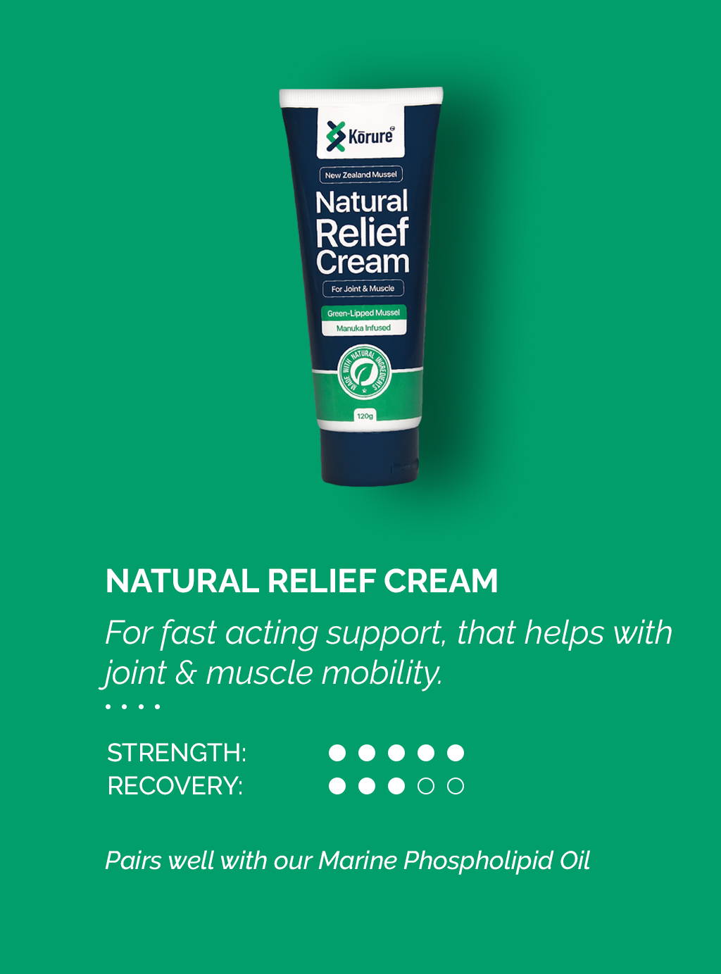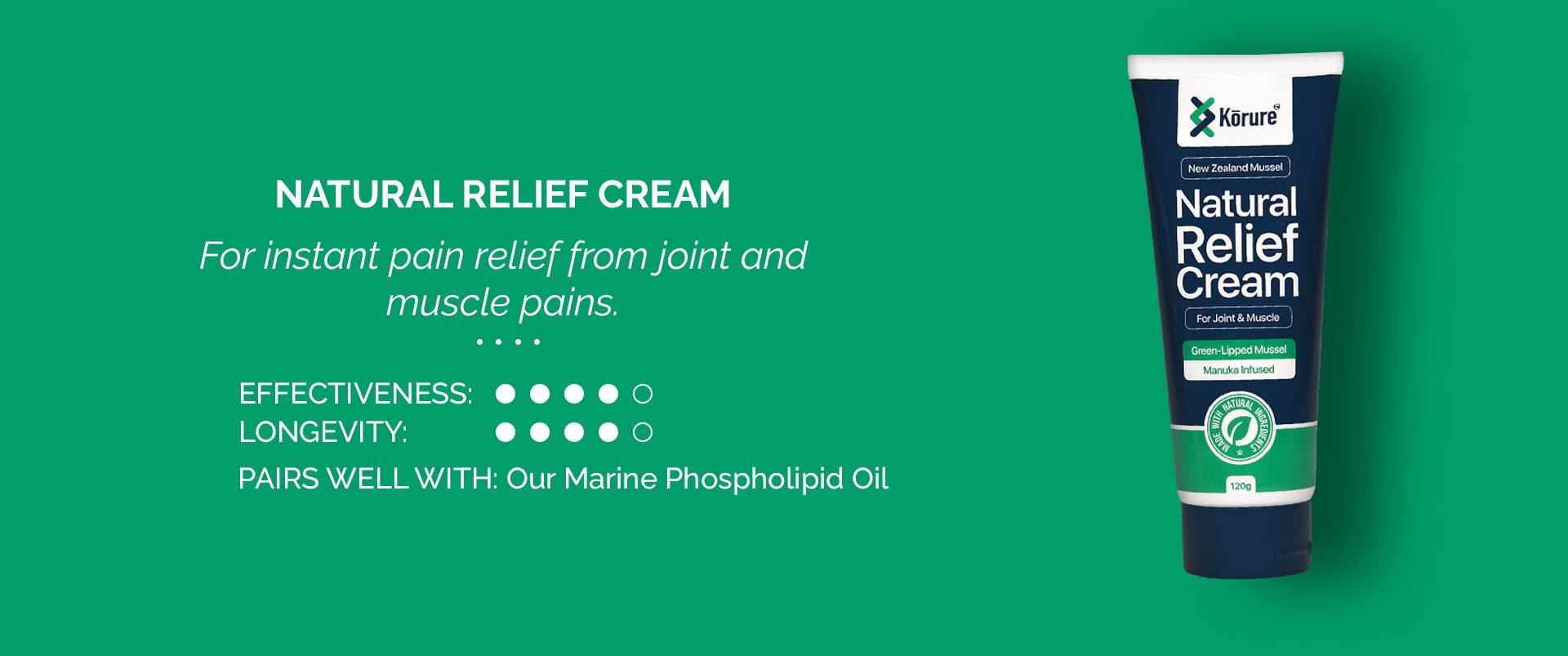 I am very pleased with the product have tried quite a few over the last couple of years but Korure seems to relieve the stiffness and reduces the pain
